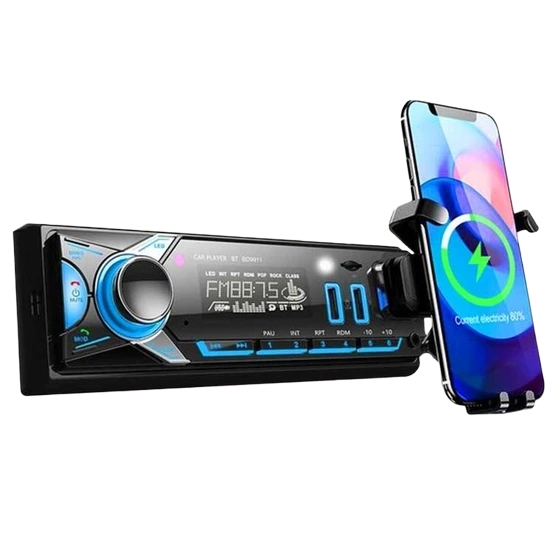 رادیو پخش پنل ثابت هولدر دار برند gold مدل BD-9911-BT آی سی بزرگ یکی از محصولات این برند است. مدل BD-9911-BT با بیشینه صدای خروجی 4 × 50 وات، کیفیت صدای خوبی به شما میدهد تا از لحظات حضورتان داخل خودرو لذت ببرید. برای پخش موسیقی، این مدل به درگاههایی شامل، پورت USB، درگاه جک 3.5 میلیمتری یا همان AUX و بلوتوث و شیار کارت خوان مجهز شده است و علاوه بر این امکانات دارای هولدر نگهدارنده موبایل می باشد. با اتصال فلش مموری یا کارت حافظه به این دستگاه شما قادرید از فایلهای درون فلشتان استفاده کنید. این مدل برای افرادی که به رادیو علاقه دارند انتخاب مناسبی است. یکی از قابلیتهای این مدل کنترل از طریق ریموت است. برای زمانی که از دستگاه فاصله دارید یا فرد دیگری جز راننده قصد تغییر تنظیمات را دارد.